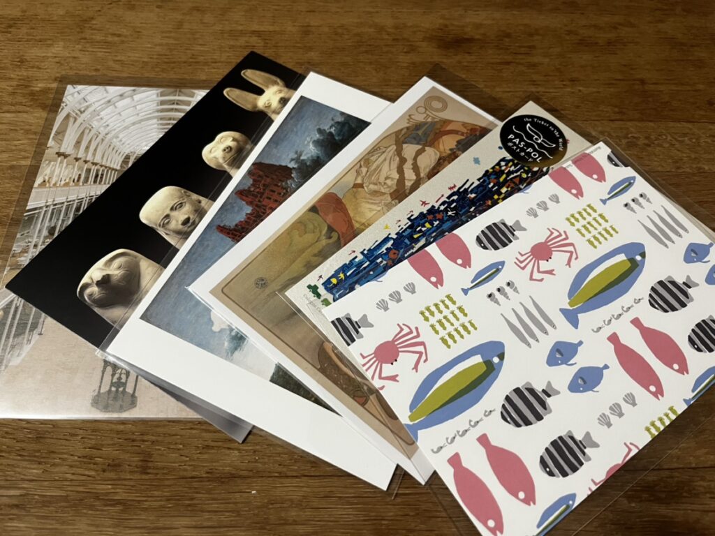 美術展などでお土産として買ったはがきがたくさんあるので、